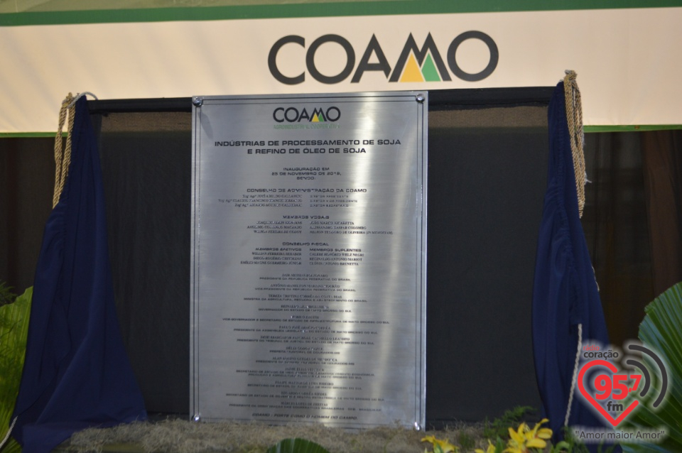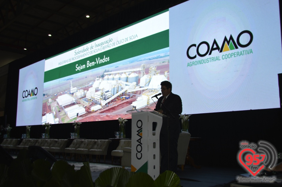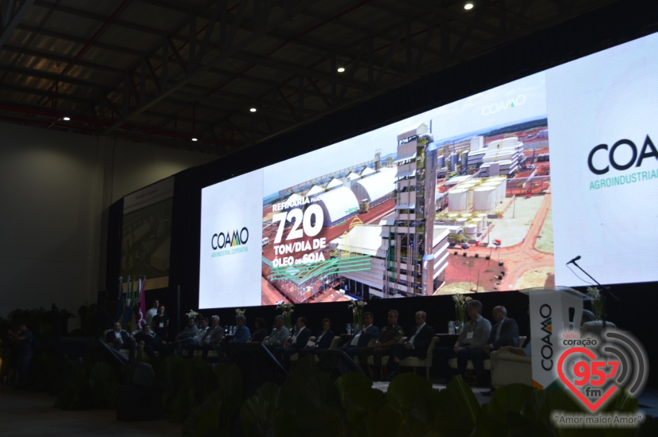 As novas indústrias de óleo e refinaria de óleo de soja construídas na margem da BR 163, entre Dourados e Caarapó, no Mato Grosso do Sul, foram inauguradas na manhã de segunda-feira (25). Foram investidos mais de R$ 780 milhões na planta industrial que tem capacidade para processamento de 3.000 toneladas/dia de soja, produção de farelo de soja e uma refinaria para 720 toneladas/dia de óleo de soja, equivalente a 15 milhões de sacas. Com as indústrias de Dourados, somados aos outros dois parques industriais, a Coamo amplia a capacidade de processamento de soja para 8.000 toneladas/dia e a de refino para 1.440 toneladas/dia de óleo de soja refinado.