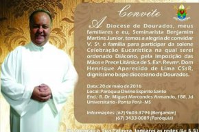 Dom Henrique convidou Benjamim Martins Júnior, futuro diácono e sacerdote da Diocese de Dourados, que será ordenado na noite deste sábado (20/05) às 19 horas na Paróquia Divino Espírito Santo de Ponta Porã. Ozair Sanabria mediou o programa com...